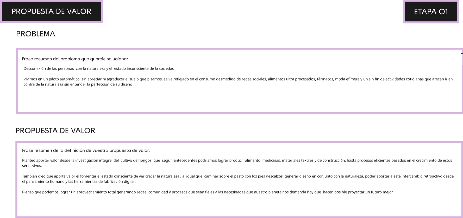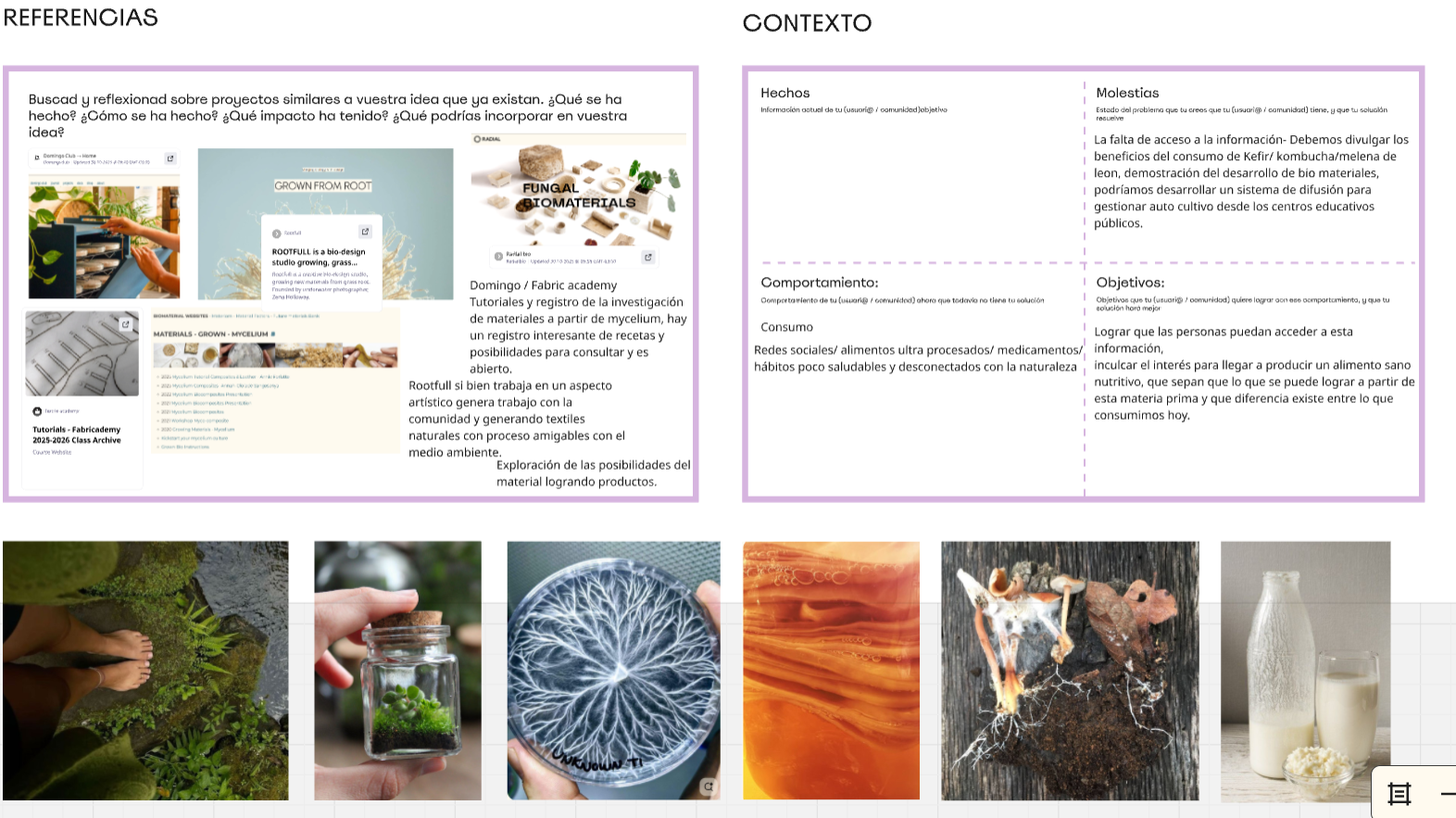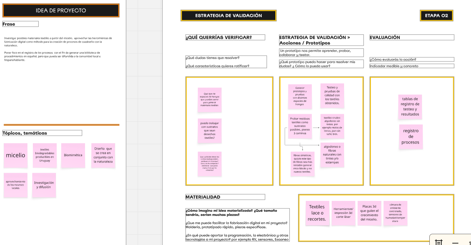 Para estos ejercicios trabajamos en la plataforma de Miro, las plantillas nos dirigen en un camino de pensamiento en el que exploramos posibles prototipos herramientas, resultados y/o productos.