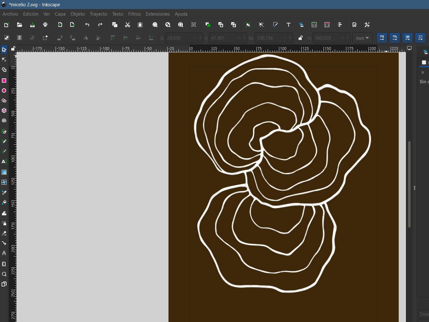 El vector lo generé a partir de una imagen dentro de Inskape, generé un rapport, y pude seleccionar las formas que quería calar y luego las que serían parte de la textura.