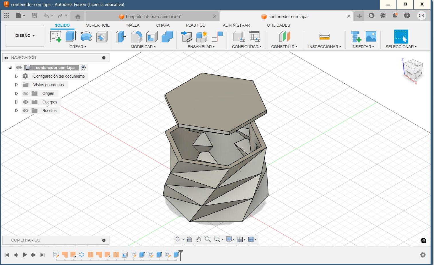 Probé un tutorial de una maceta facetada, en Fushion 360 entendí varias herramientas básicas.