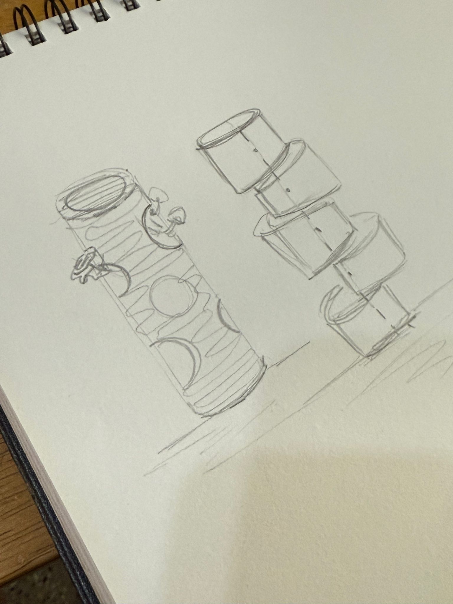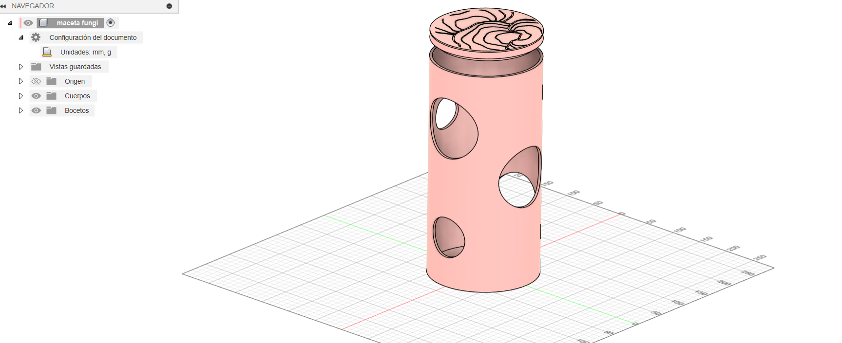 Comencé a intentar trazar mi propuesta, tratando de aplicar lo que había aprendido hasta ahora, generé un cilindro hueco, pero a la hora de hacer las perforaciones no lograba el resultado que esperaba.